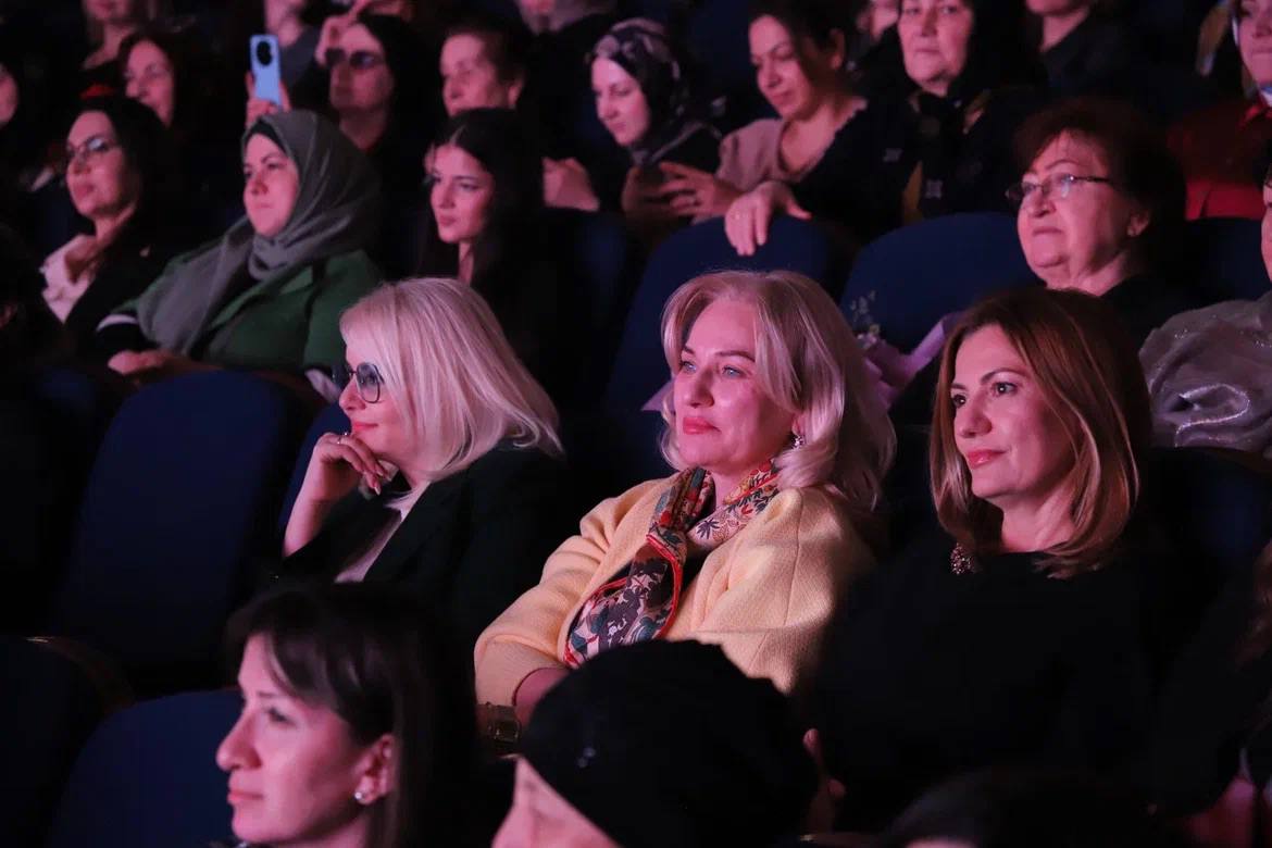 Посвящение матерям на языках народов республики прозвучало от известных артисток - Ларисы Гаджиевой, Патимат Кагировой, Рукият Гамзатовой, Машидат Омарасхабовой, Мати Мустафаевой.