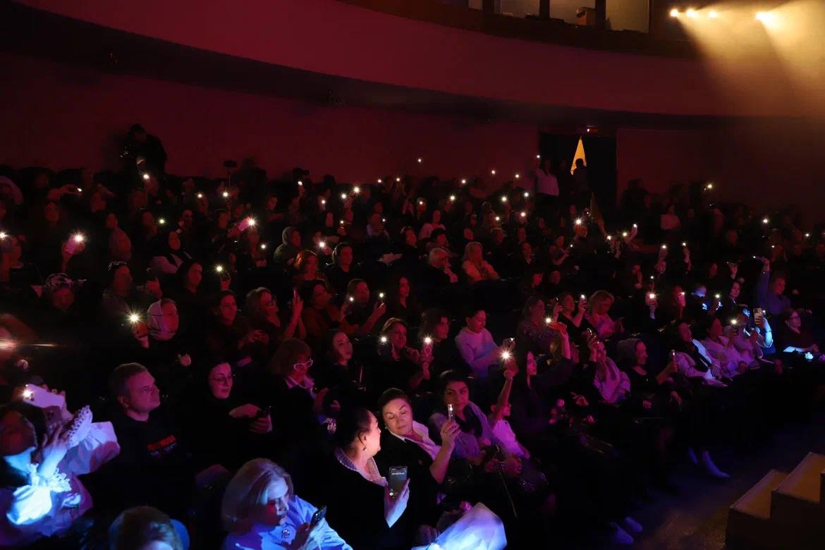 В зале собрались представительницы прекрасного пола - деятели культуры и искусства, общественные деятели, представительницы региональных творческих союзов, а также родные и близкие участников спецоперации.