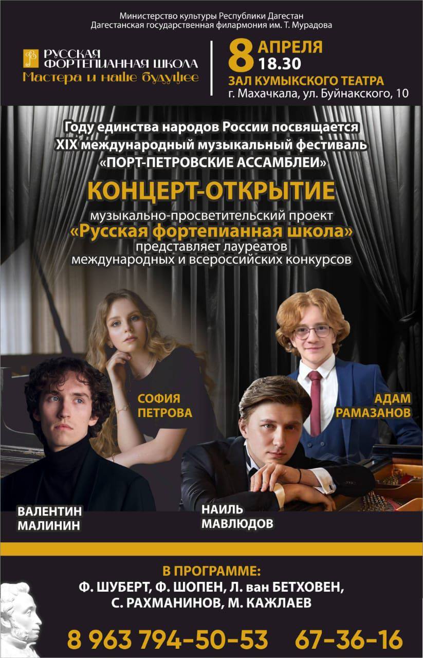 8 апреля Дагестанская филармония приглашает на первый концерт XIX международного фестиваля «Порт-Петровские ассамблеи».