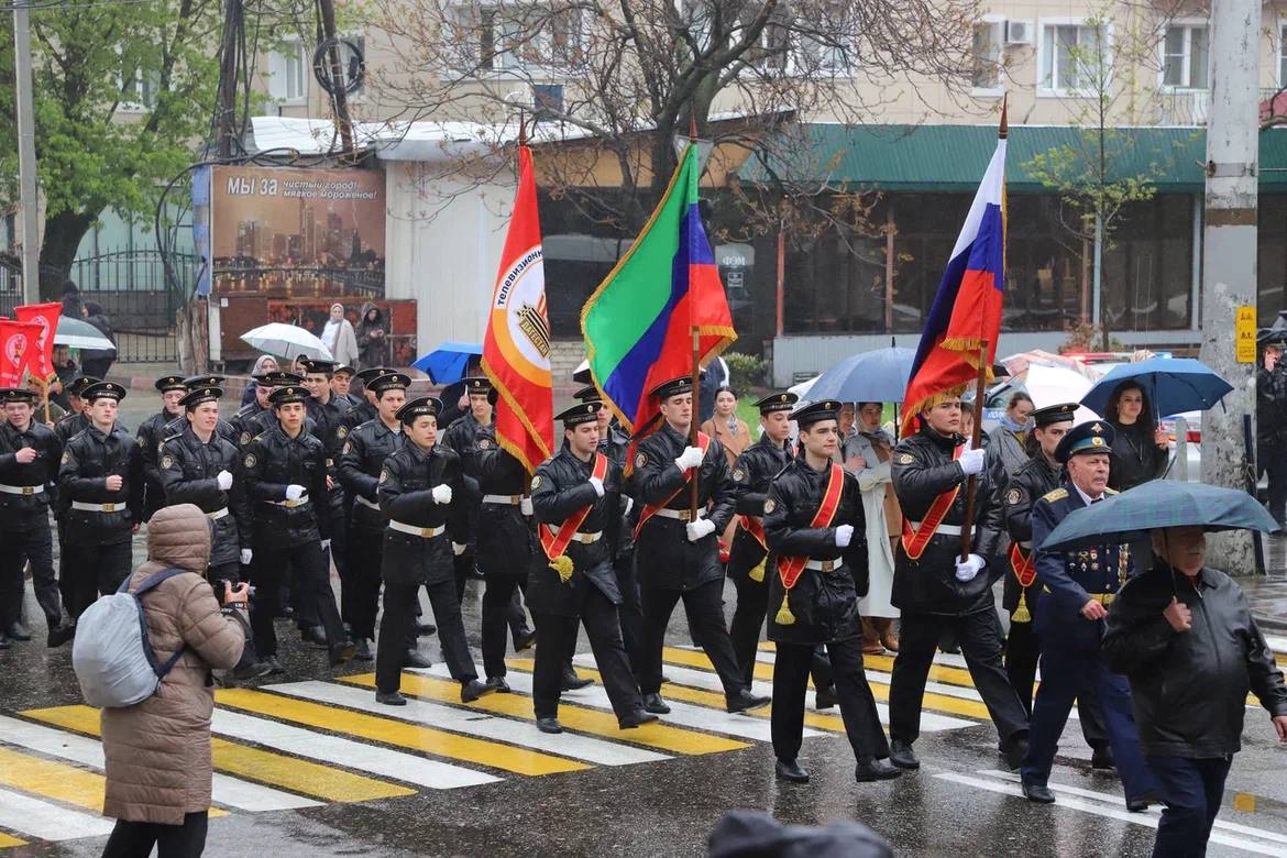 Патриотическая акция, посвящённая 81-й годовщине Победы в Великой Отечественной войне, прошла сегодня в Махачкале. Участники в сопровождении военного оркестра прошли с флагами и портретами героев от центральной площади столицы до парка им. Ленинского комсомола.