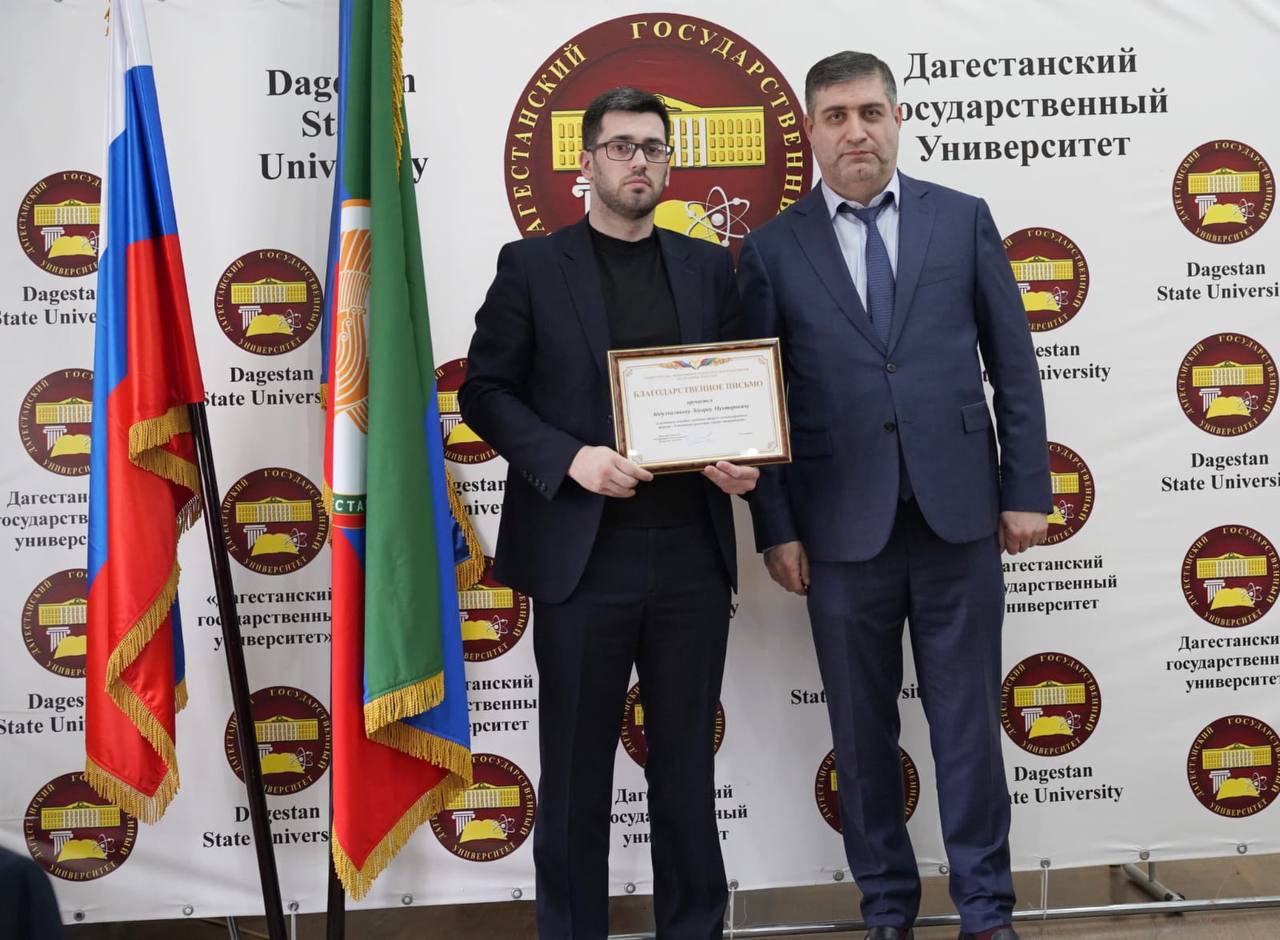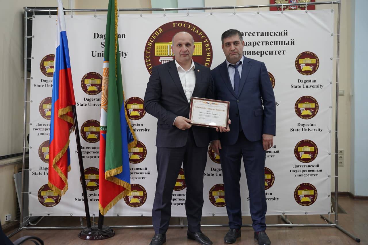 Заместитель министра экономики и территориального развития Республики Дагестан Марат Сайпулаев принял участие в заседании Ученого совета Дагестанского государственного университета. В рамках мероприятия замминистра вручил сотрудникам вуза благодарственные письма министерства за активное участие в подготовке и проведении II Международного форума «Устойчивое развитие горных территорий».