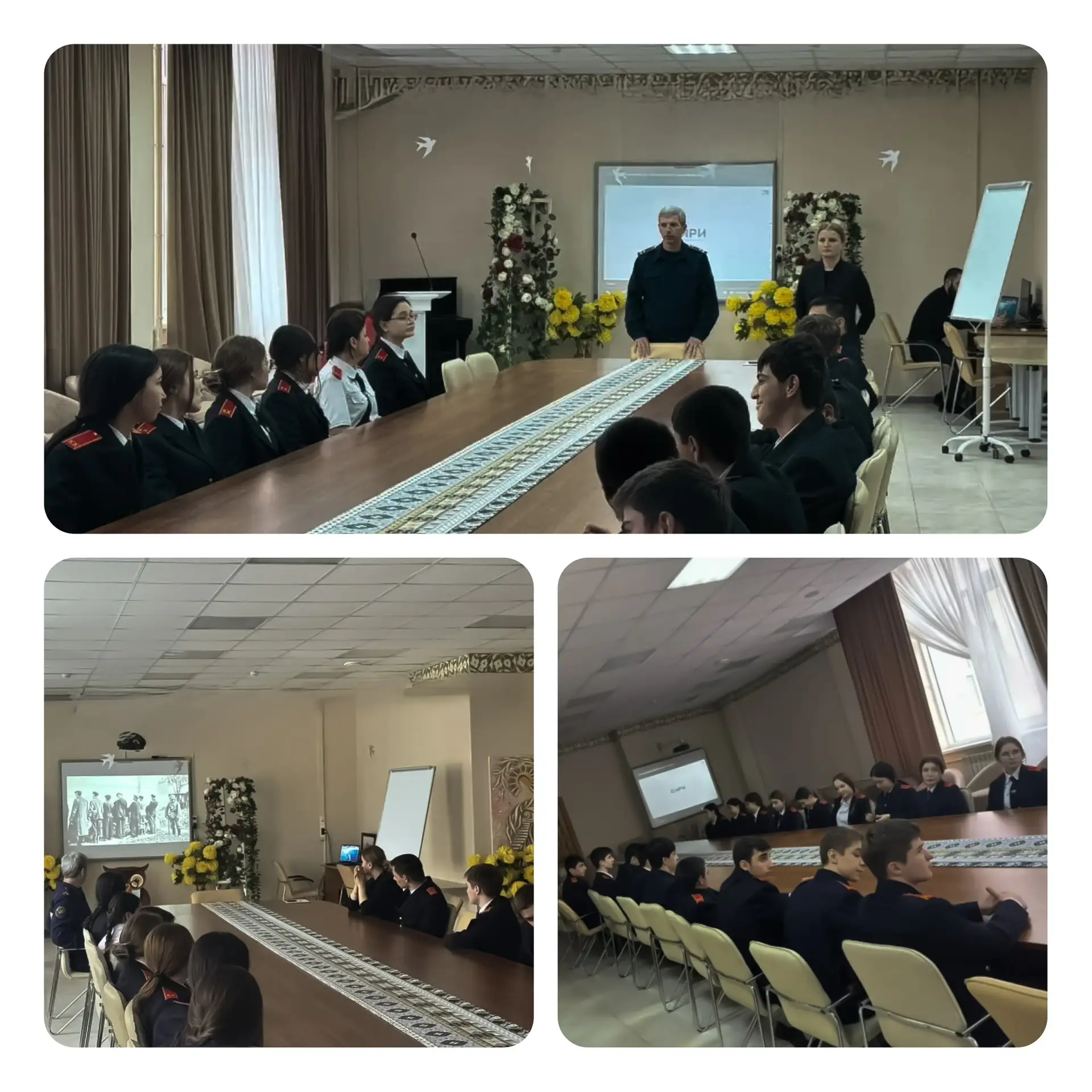 В ходе занятия кадетам доведена информация об исторических фактах преступлений нацистов и их пособников против мирного населения в годы Великой Отечественной войны, а также о значении сохранения исторической памяти и недопустимости искажения событий прошлого.