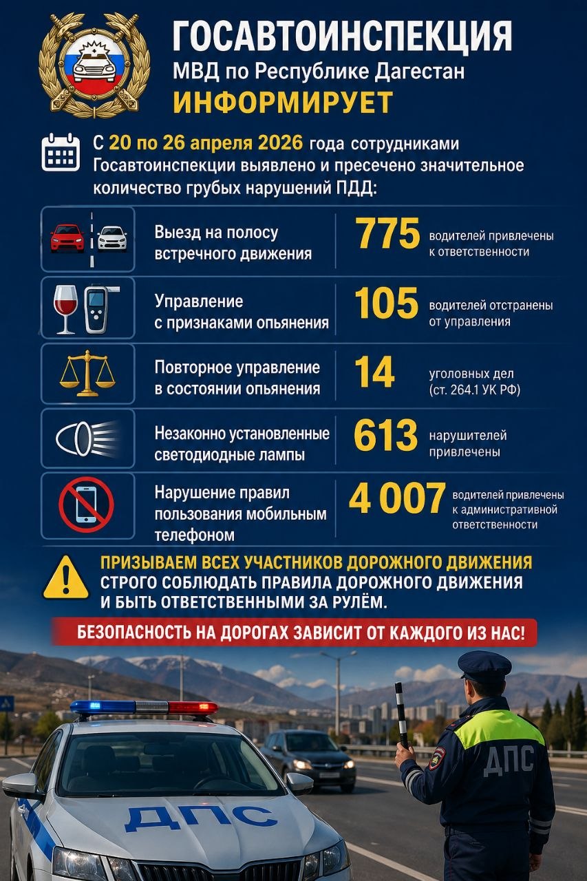 Госавтоинспекция МВД по Республике Дагестан информирует