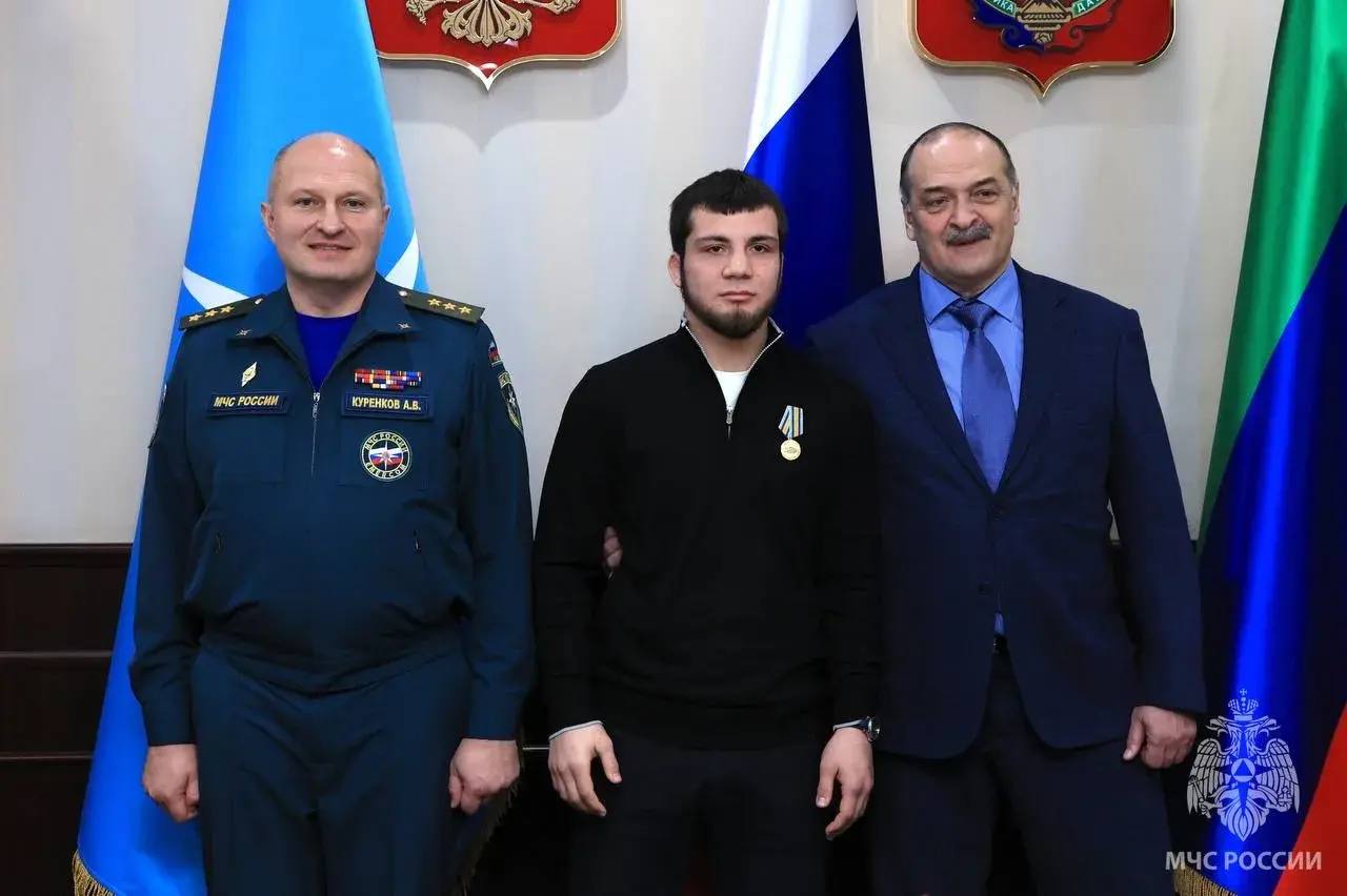 Глава МЧС России Александр Куренков вручил ведомственные медали «За спасение погибающих на водах» мужчинам, которые вызволили людей из КОРа в Махачкале.