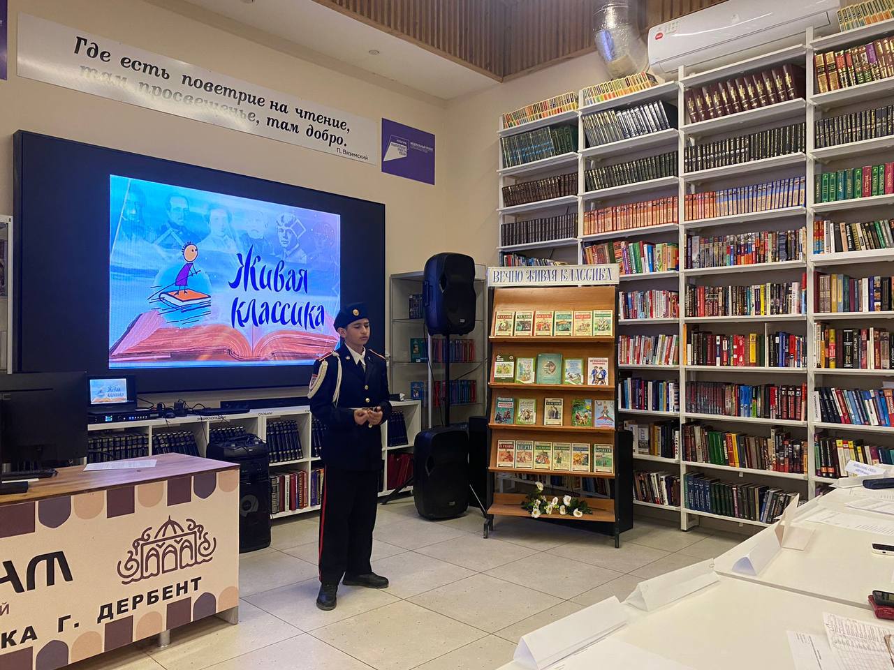 Сегодня,5 марта, в Дербенте, на базе обновлённого читального зала Центральной городской библиотеки им. М. Казем-бека, состоялось событие, которое в очередной раз доказало: классика жива, и она способна вдохновлять новые поколения. Муниципальный этап Всероссийского конкурса юных чтецов «Живая классика», проходящий под патронатом Министерства просвещения РФ, собрал 36 талантливых ребят со всего города, готовых подарить вторую жизнь любимым литературным произведениям.