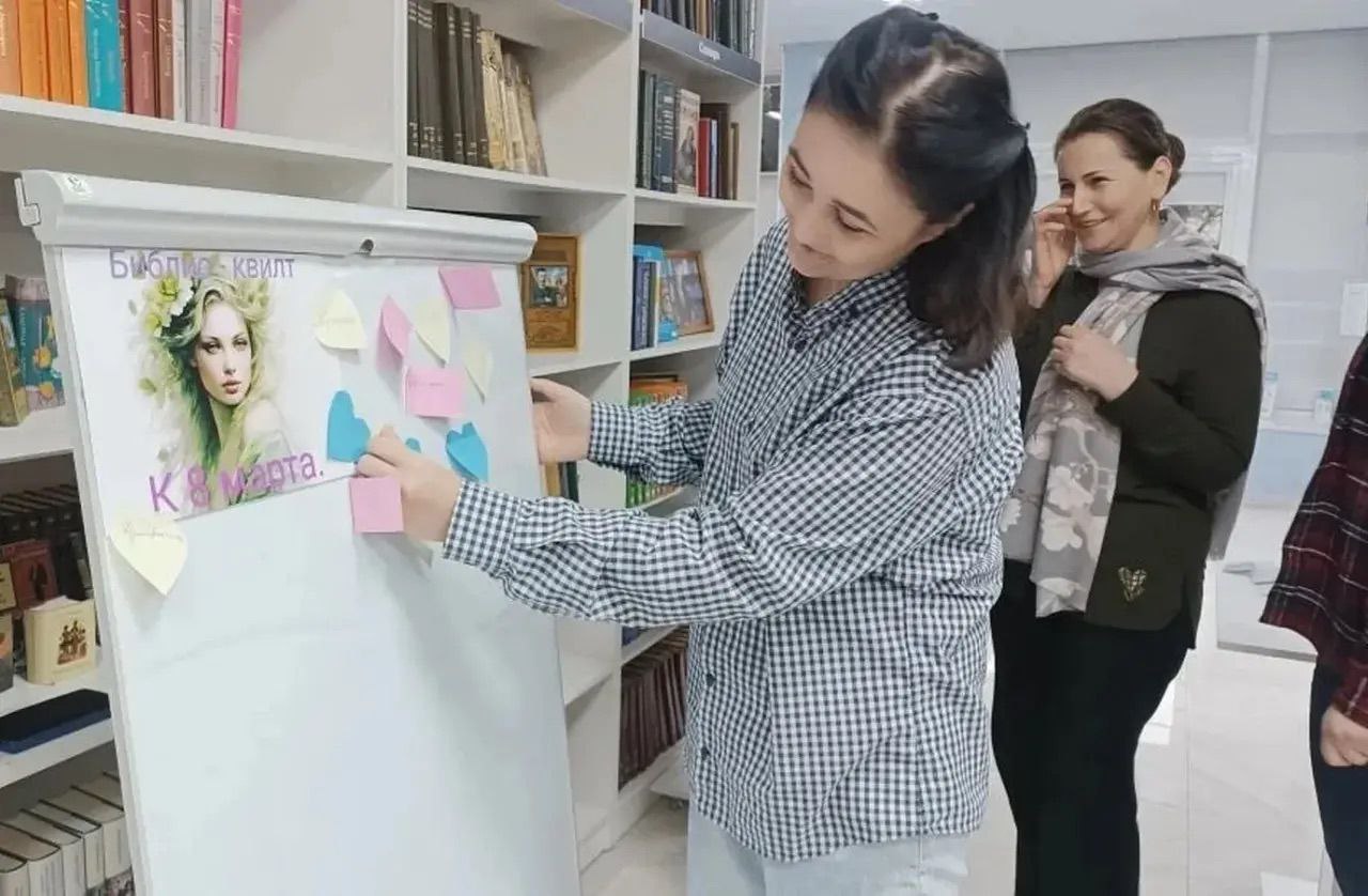 В рамках мероприятия участники создали уникальный «Библио-квилт», делясь своими ассоциациями с праздником – любовью, весной, семьей и нежностью. Вечер сопровождался чтением бессмертных произведений классиков русской литературы.