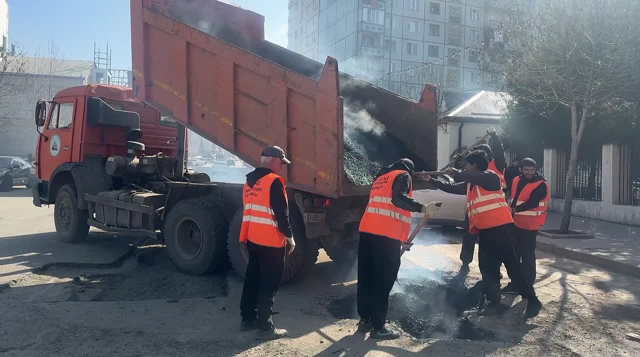 Работы по восстановлению дорожного полотна ведутся на улице Абдулхамида Юсупова.