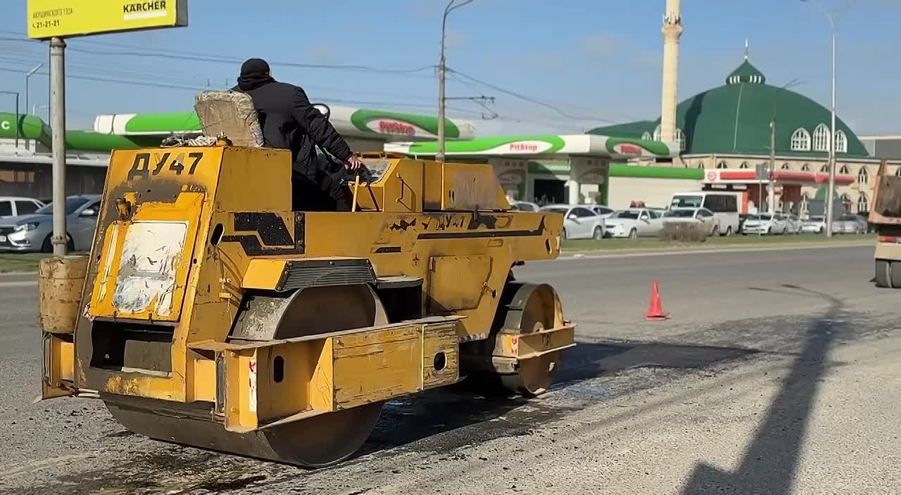 Сейчас работы идут на улице Хаджи Булача и проспекте Акушинского. Сначала повреждённые участки фрезеруют, затем обрабатывают битумной эмульсией для лучшего сцепления, после чего укладывают асфальт и уплотняют катком. Параллельно бригады трудятся и на других улицах города.