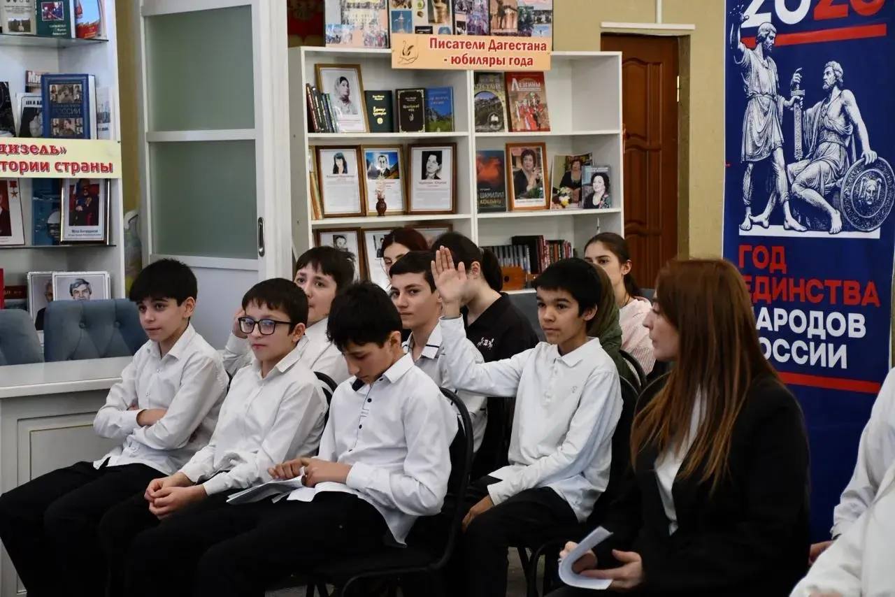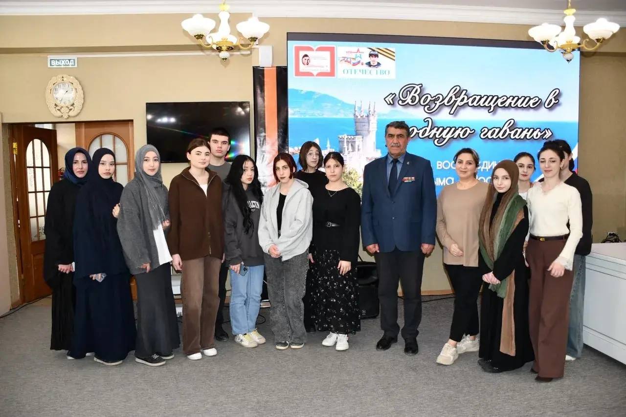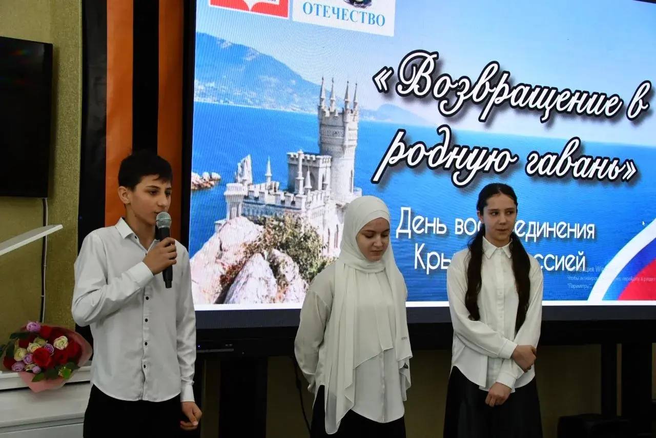 В Центральной модельной библиотеке ЦБС им. Ф. Алиевой состоялся урок Мужества, посвященный Дню воссоединения Крыма с Россией. Участниками встречи стали студенты ПО АНО «Энергетический колледж» и учащиеся 6 «б» класса СОШ№4 имени Героя Советского Союза Магомед-Загида Абдулманапова.