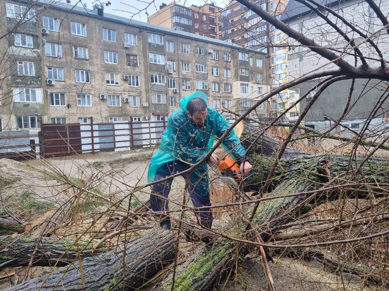 Коммунальные службы города оперативно приступили к ликвидации последствий — проводится спил аварийных стволов и вывоз порубочных остатков.