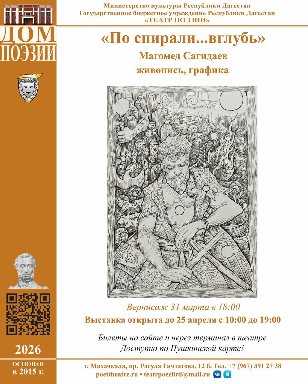 31 марта в 18:00 в Галерее Театра поэзии состоится Вернисаж выставки Магомеда Сагидаева «По спирали…вглубь».