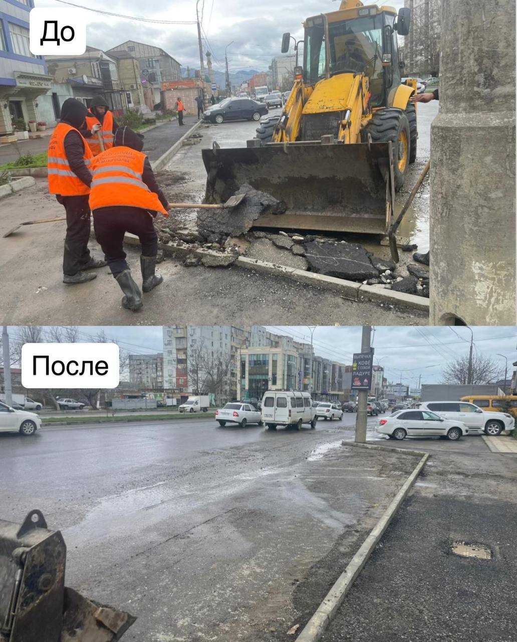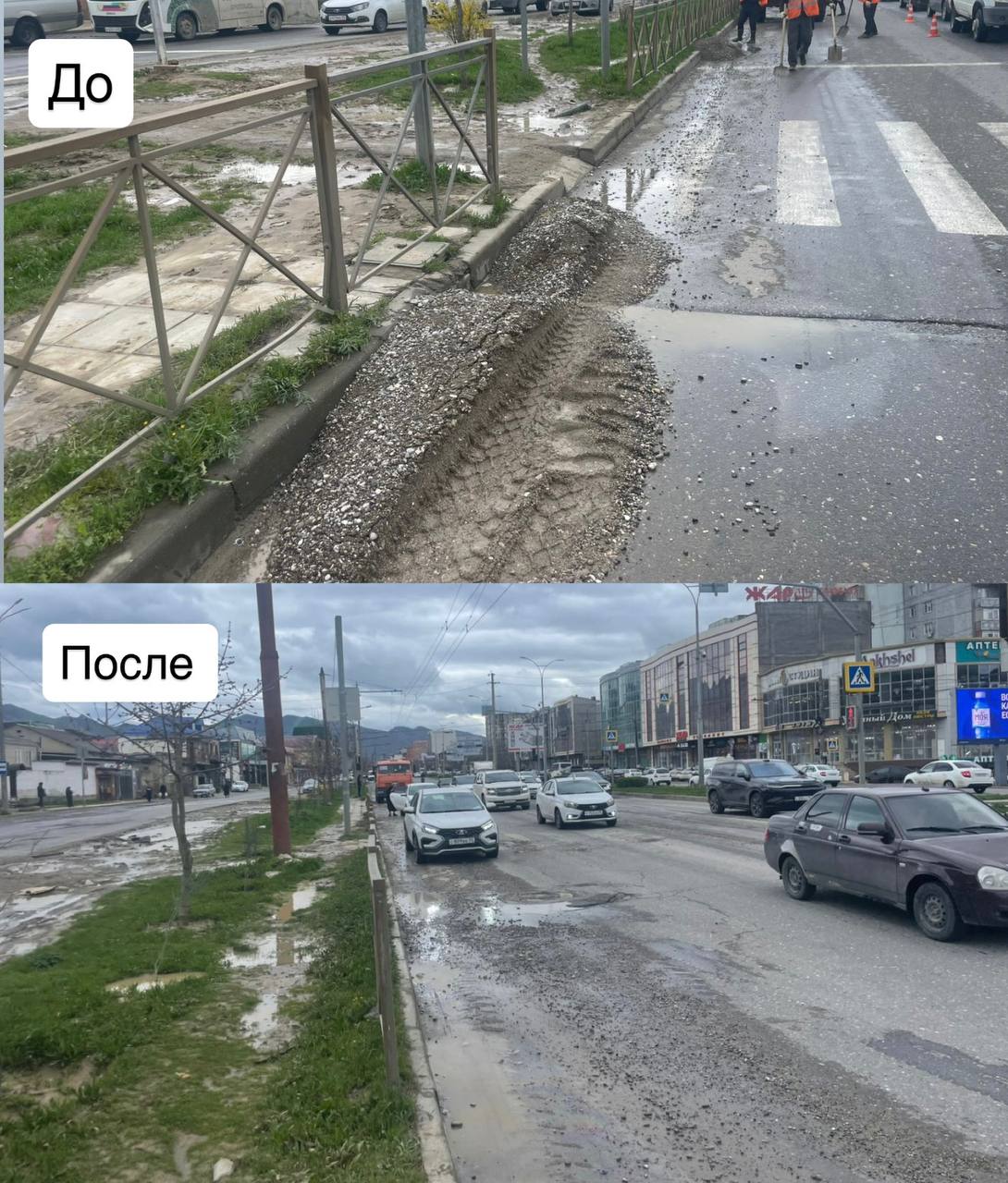 На проспекте Акушинского сотрудники МБУ «ЦОДД» г. Махачкалы продолжают работы по очистке улично-дорожной сети от последствий стихии.