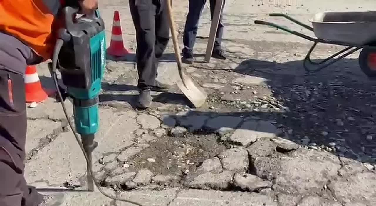 Работы по ямочному ремонту проходят на улице Хаджи Булача.
