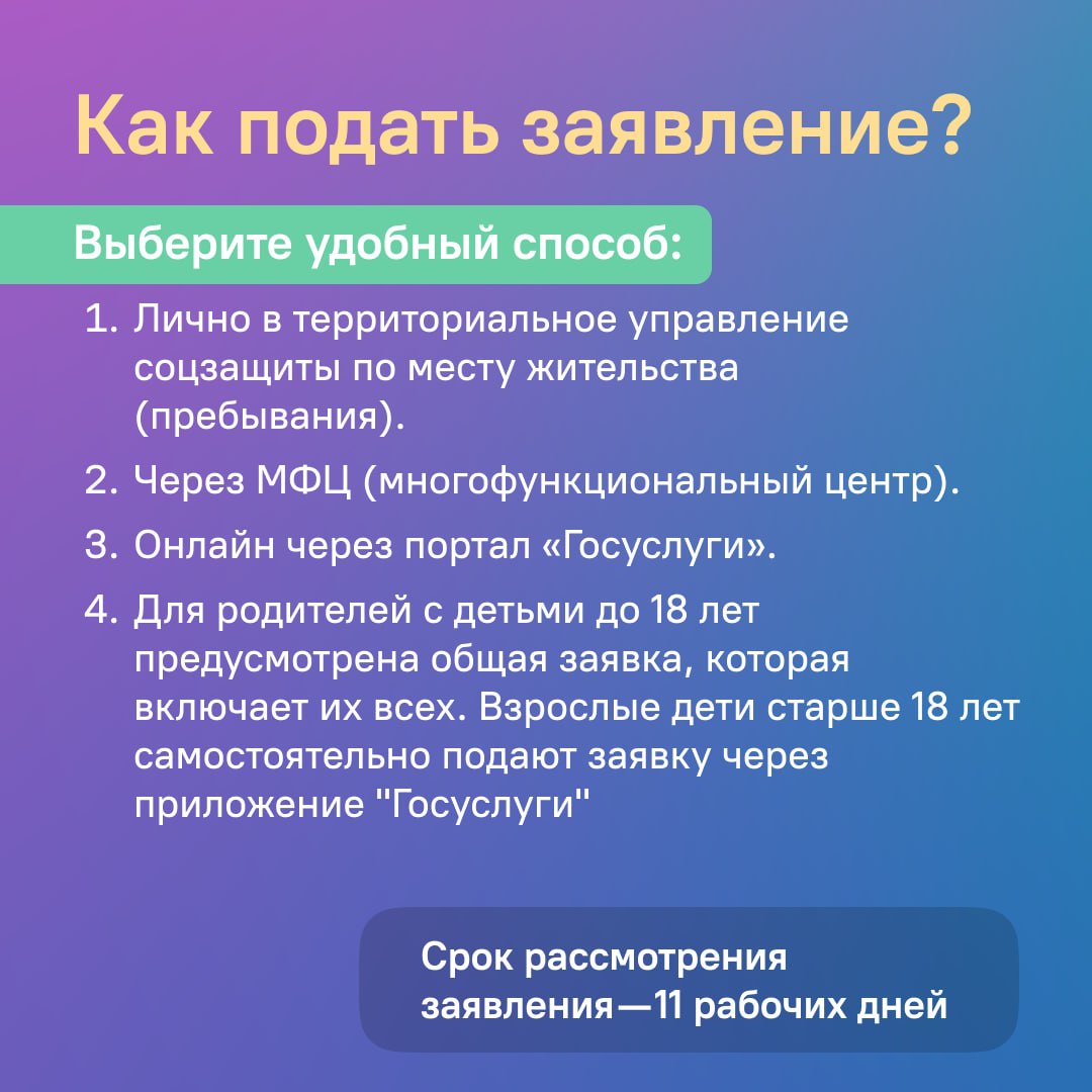 Подать заявление можно в соцзащиту, МФЦ или через «Госуслуги». Сроки различаются: на материальную помощь — 1 месяц со дня введения ЧС, на имущество — 6 месяцев, на вред здоровью — 12 месяцев.