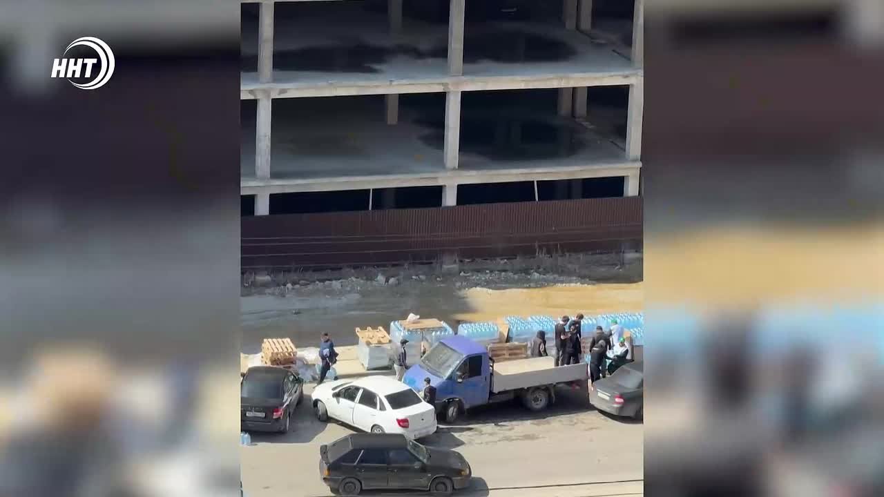 В Каспийск воду доставили волонтёры из Карачаево-Черкесии — ночью они разгружали её для жителей одного из дворов, как говорят очевидцы до четырёх утра.
