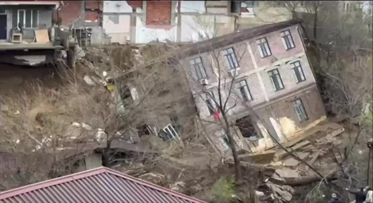 Угроза обрушения многоэтажки в Махачкале. Она расположена рядом с трёхэтажным домом, который уже рухнул. Проводится массовая эвакуация.