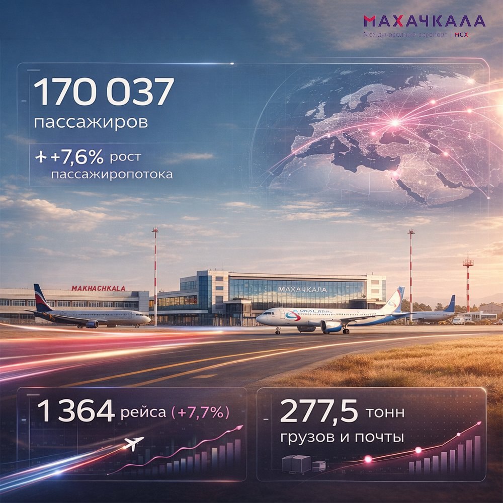 Пассажиропоток аэропорта Махачкалы им. дважды Героя Советского Союза Амет-Хана Султана в марте 2026 года вырос на 7,6% по сравнению с аналогичным периодом прошлого года. Обслужено 170 037 человек.
