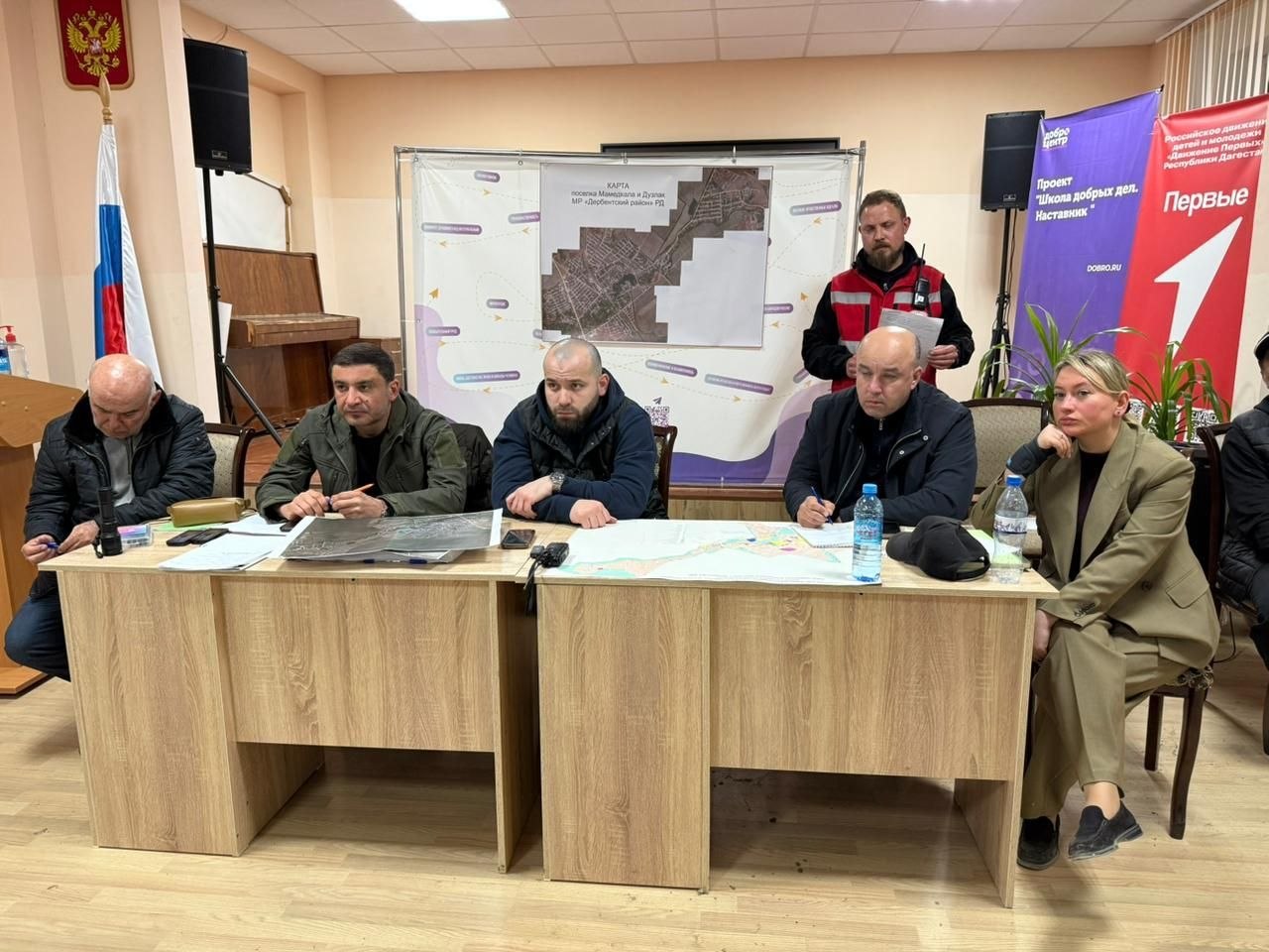 Только в первом часу ночи, завершилось оперативное совещание совместно с министром по туризму и народным художественным промыслам Эмином Мердановым. Оно прошло в пункте временного размещения, организованном в здании Мамедкалинской гимназии.