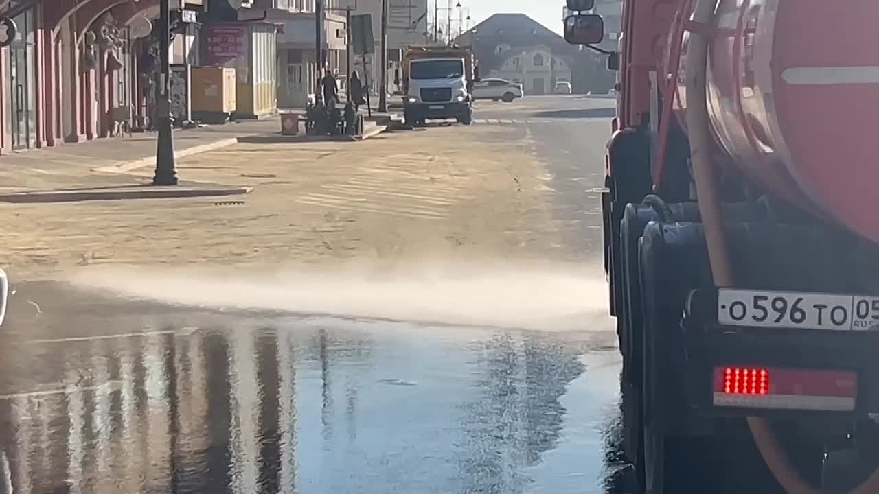Городские коммунальные службы продолжают приводить улицы Дербента в порядок после ливневых дождей. На улице Гейдара Алиева ведутся уборка наносов и промывка проезжей части поливомоечными машинами.