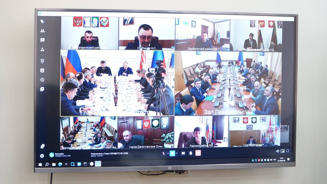 В режиме видеоконференцсвязи к трансляции были подключены глава города Каспийска Борис Гонцов, депутат НС РД Заур Расулов, а также представители ключевых отделов и управлений администрации Каспийска.