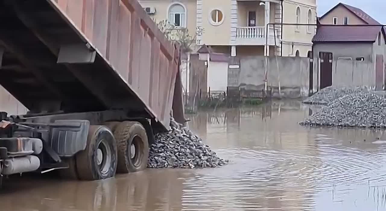 Одной из мер по наведению порядка и восстановлению инфраструктуры после подтоплений является подсыпка песчано-гравийной смеси на проезжую часть.