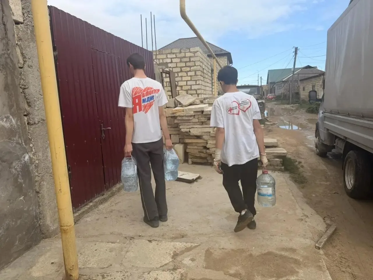 Студенты-волонтеры Медицинского колледжа имени Илизарова доставили бутилированную воду в микрорайон Аэропорт. Помощь охватила порядка 80 домов по улицам Персиковая, Вишнёвая и Мусы Манарова.