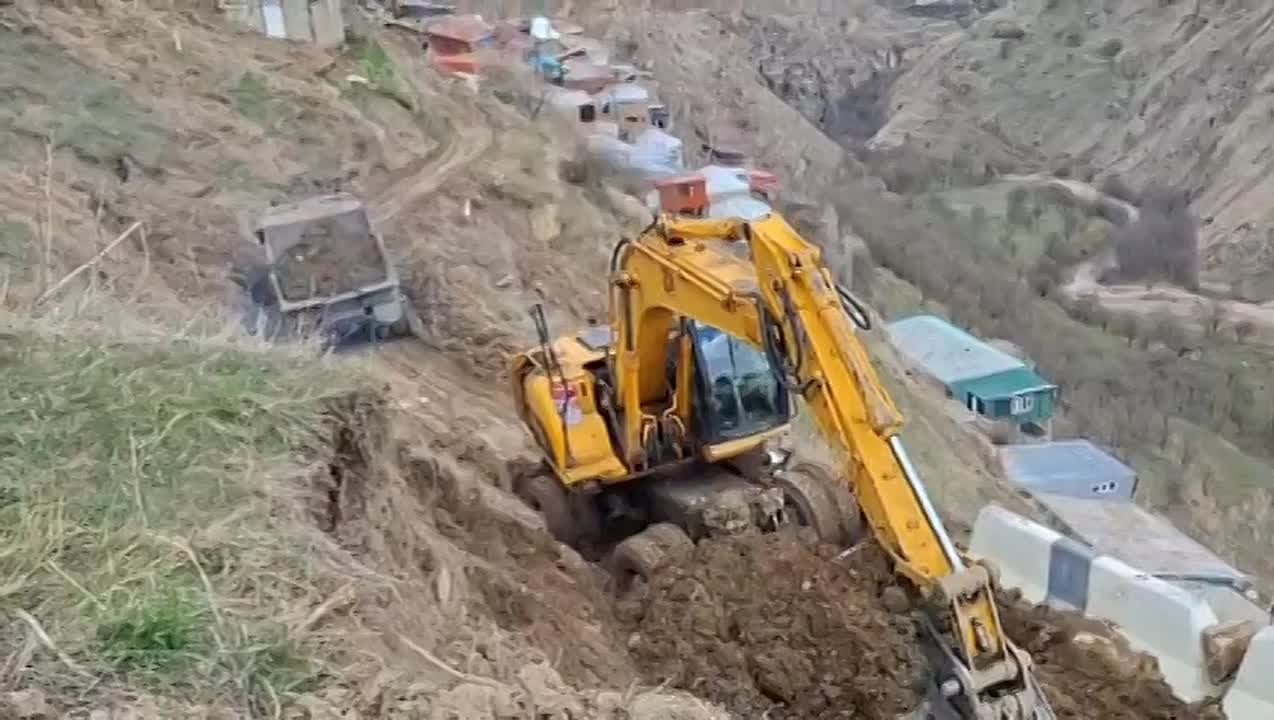 Работы по расчистке дороги продолжаются. Задействовано 4 единицы техники - 1 экскаватор, 1 погрузчик, 2 автосамосвала.