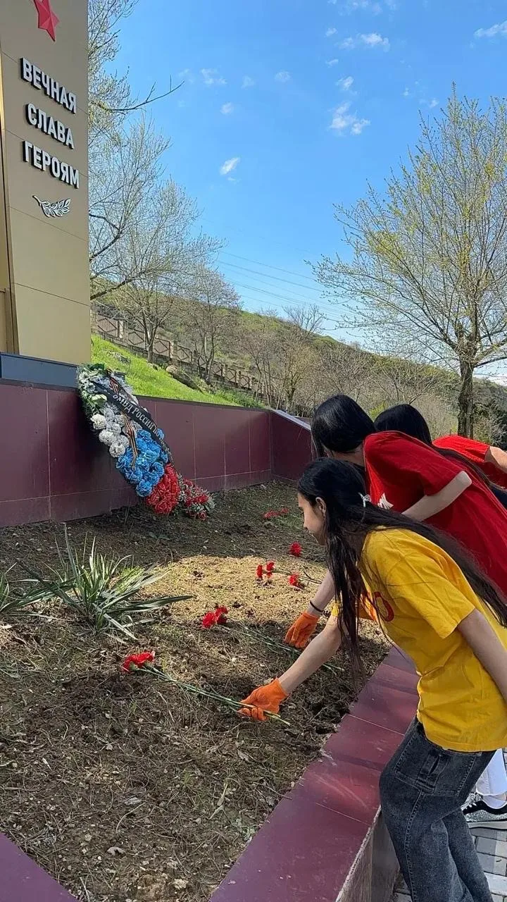 Ребята привели в порядок прилегающую зону, убрали сухую траву, ветки и листву, подмели дорожки. Кроме того, активисты очистили от пыли и мха памятные плиты, поправили ограждения и возложили цветы к подножию обелисков.