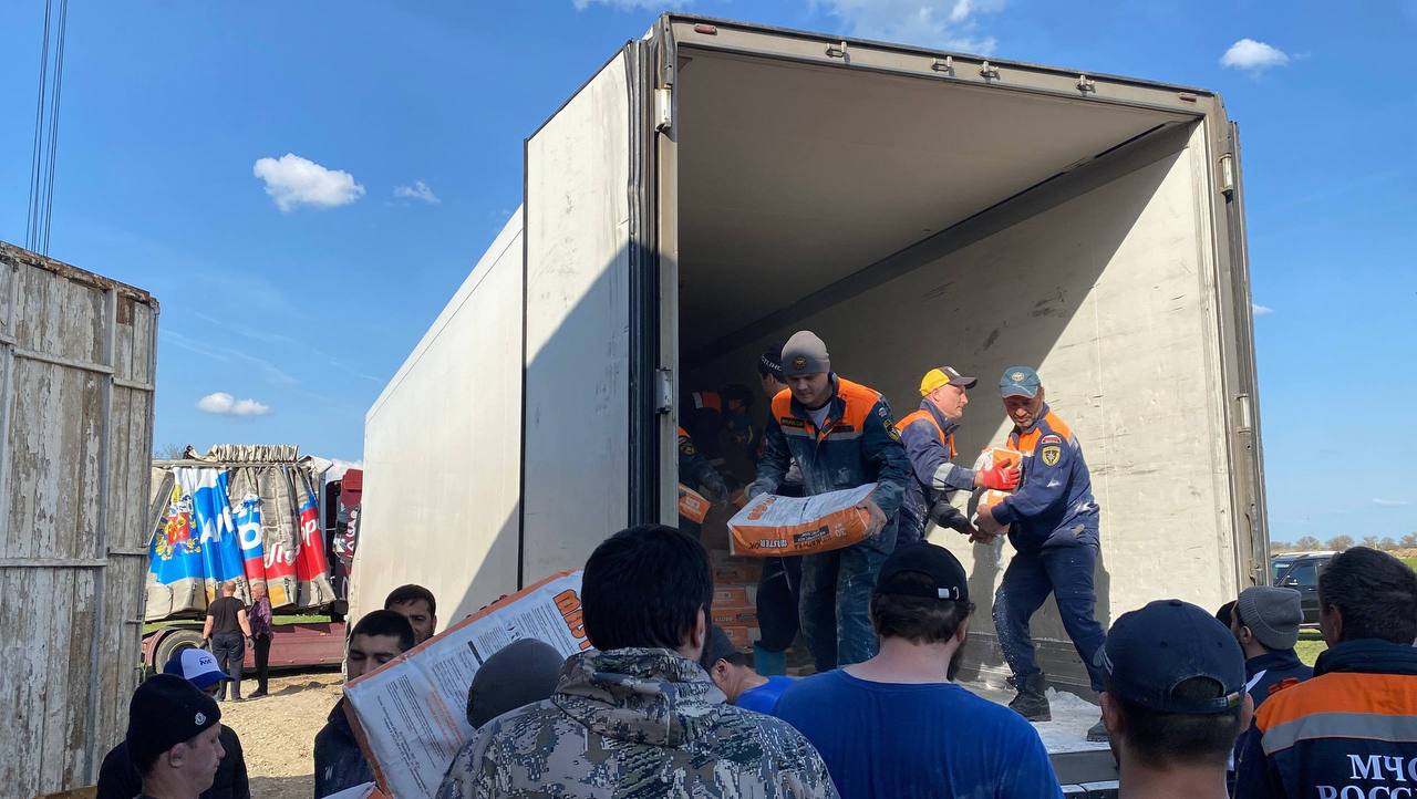 В разгрузке фур из Оренбургской области участвовали волонтеры Единой России - студенты Училища олимпийского резерва города Хасавюрта, сотрудники Управления культуры Хасавюртовского района, а также сотрудники и спасатели МЧС России.
