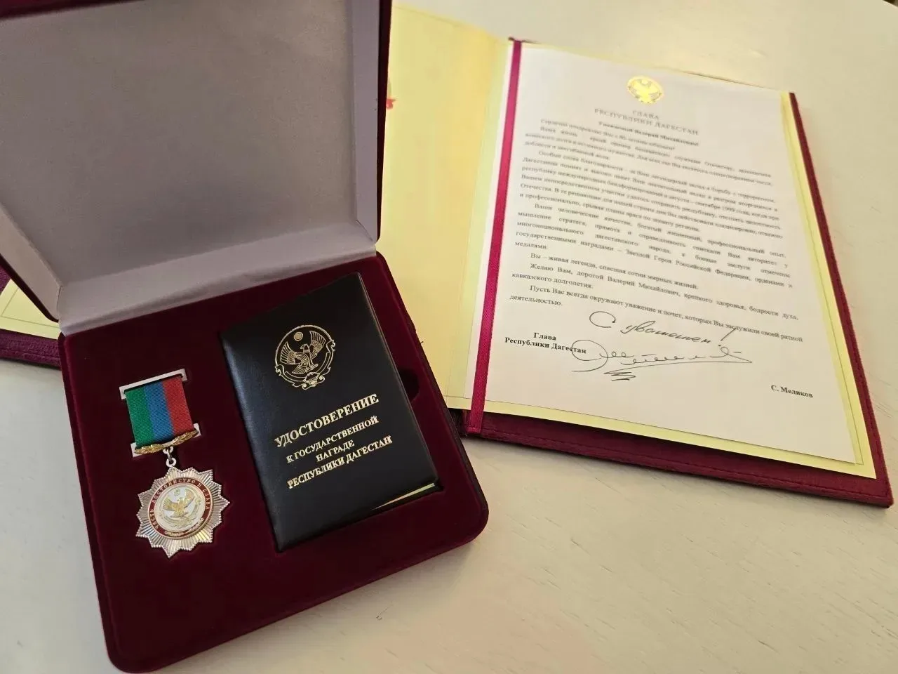 В канун своего 80-летия Герой России Валерий Горбенко удостоен высшей награды Республики Дагестан. Торжественная церемония награждения, по распоряжению Главы Республики Сергея Меликова, прошла в постпредстве Дагестана в Москве.