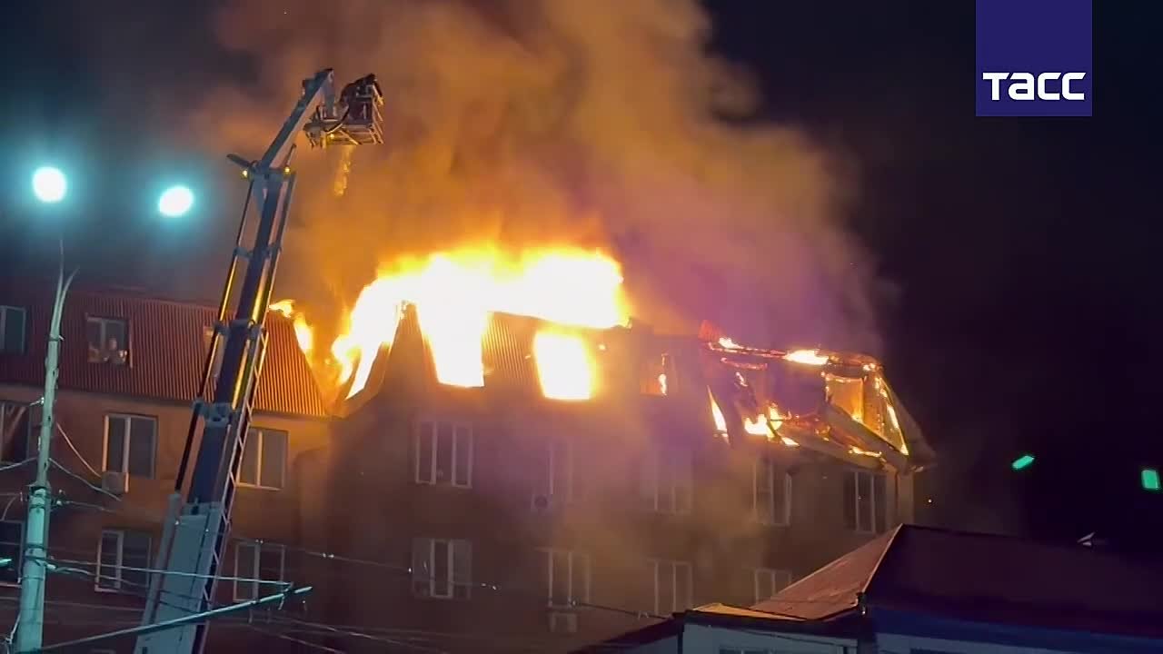 "Дом монолитно-кирпичный по деревянной обрешетке, перекрытие металлопрофиль. Всего к тушению привлечены от РСЧС 39 человек и 12 единиц техники, в том числе от МЧС 25 человек и 7 единиц техники", - говорится в сообщении.