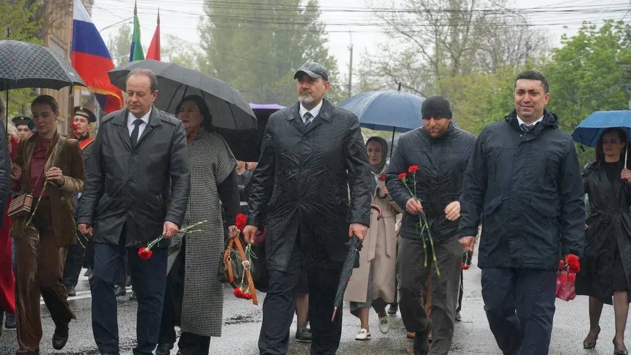 Акция стартовала на площади им. Ленина. В сопровождении военного оркестра махачкалинского соединения войск национальной гвардии колонна участников проследовала к парку им. Ленинского комсомола. По пути следования они возложили цветы к памятнику Герою Советского Союза Магомеду Гаджиеву.