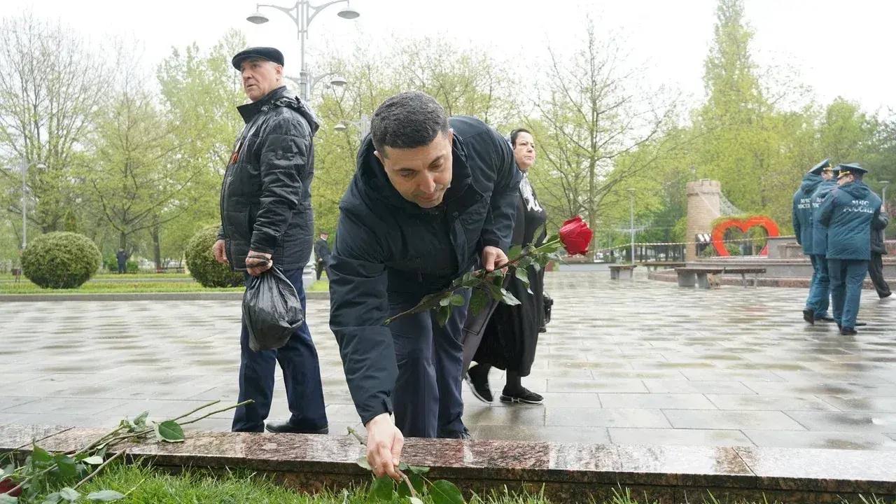 У памятника Воину-освободителю участники акции почтили память погибших в годы Великой Отечественной войны минутой молчания и возложили цветы к подножию монумента. Затем состоялось возложение цветов к портретам Героев Советского Союза и Героев России на Аллее Героев.