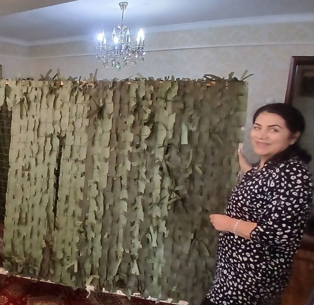 Семья Гаджи и Маржи Ильясовых с начала специальной военной операции на постоянной основе занимается плетением маскировочных сетей и изготовлением окопных свечей. По их словам, переданные ресурсы позволят увеличить объёмы производства и продолжить эту важную работу.