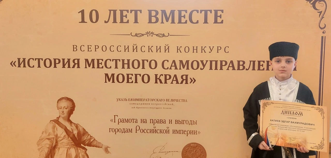 В Колонном зале Дома Союзов в Москве состоялась церемония награждения лауреатов X Всероссийского конкурса «История местного самоуправления моего края». Среди победителей - представитель Республики Дагестан, ученик СОШ №11 г. Хасавюрта Эдгар Хатиев.