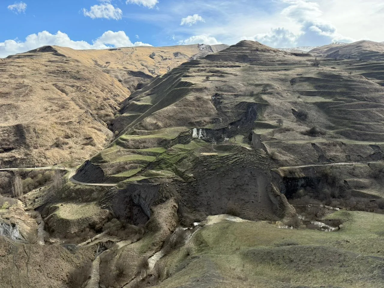 На автомобильной дороге «Леваши - Акуша - Уркарах - Маджалис - Мамедкала» на участке км 56, в результате прошедших ливневых дождей, 9 апреля произошел масштабный оползень, который полностью разрушил полку земплотна дороги со смещением по склону вниз на несколько метров.