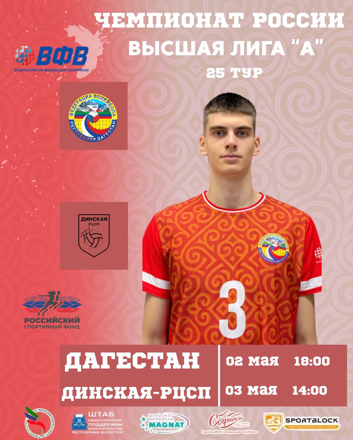 ВК «Дагестан» принимает команду «Динская-РЦСП» из Краснодарского края.