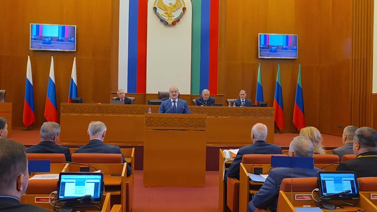 Перед собравшимися выступает Глава Республики Дагестан Сергей Меликов.