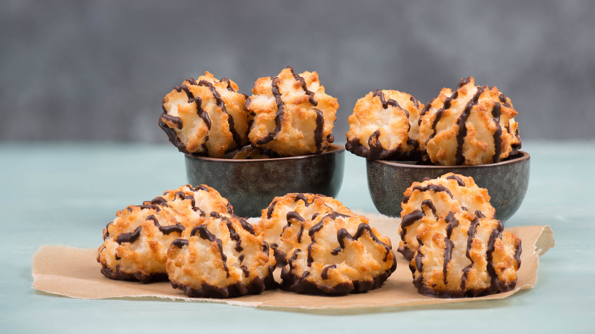 Смешайте в одной миске кокосовую стружку, яйца и сахарную пудру. Хорошо перемешайте и слепите шарики. Выложите их на застеленный бумагой противень. Запекайте первые 10 минут при 180 градусах, затем убавьте до 150 градусов и оставьте еще на 10 минут.