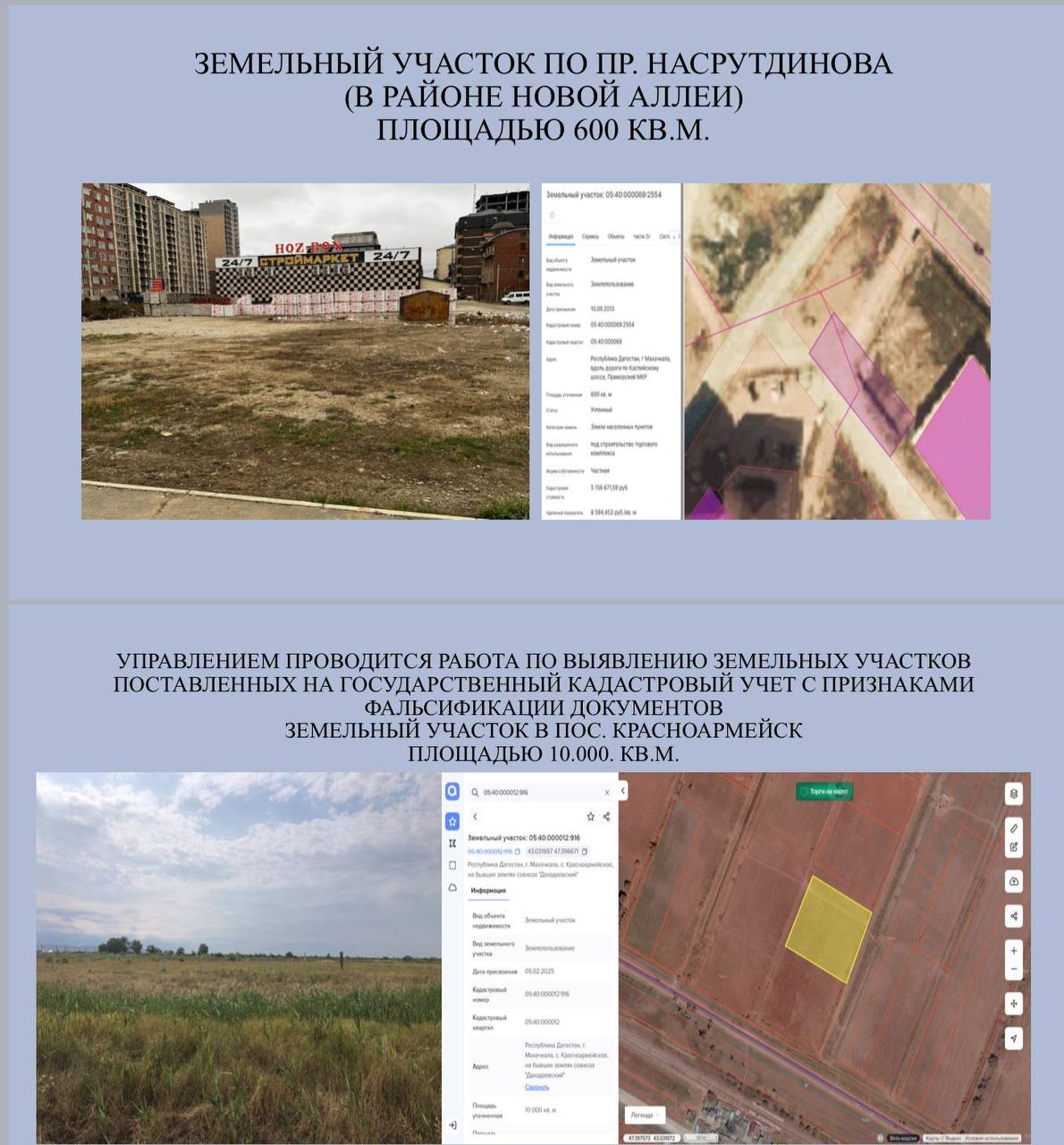 «Цифровые инструменты и системный земельный контроль позволяют нам оперативно выявлять нарушения, защищать интересы города и формировать прозрачную, экономически эффективную модель управления территорией», — отметил Батырбиев.