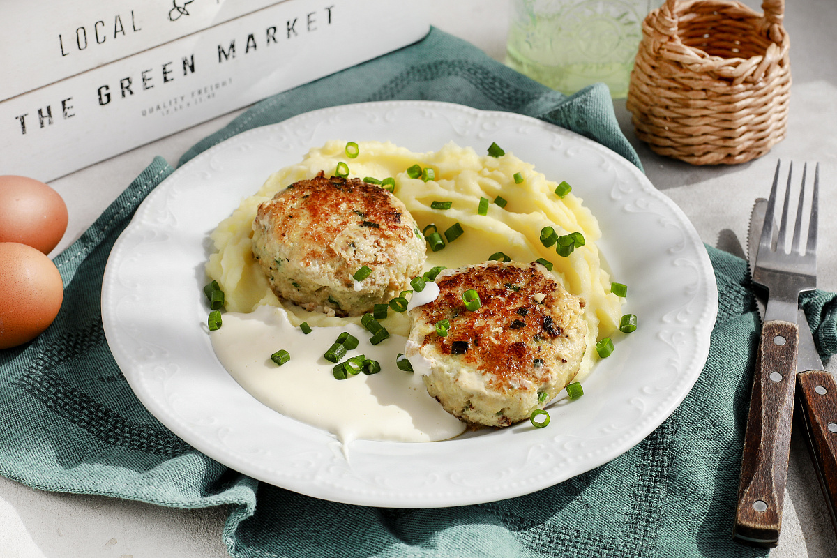 Подавайте котлеты с картофельным пюре и сливочным соусом, и наслаждайтесь!