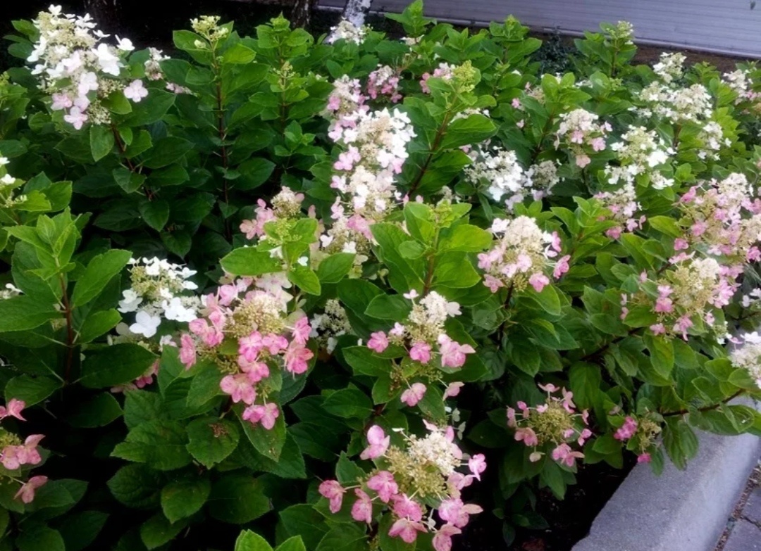 Эта элегантная гортензия высотой всего 0,8—1,2 метра порадует глаз с июня по октябрь. С округлой кроной и белыми цветами, которые по мере взросления приобретают розоватый оттенок, она станет настоящей жемчужиной в саду. Листья имеют яйцевидную форму, с тускло-зелёной верхней стороной и серо-зелёной нижней.