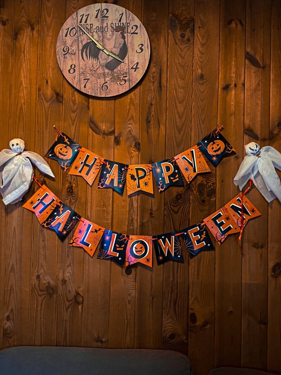 Дочь забегая в магазин приобрела некоторые элементы для украшения, а другие мы создали сами. На выходных была развернута настоящая творческая деятельность по преображению гостиной, где и пройдет праздник.