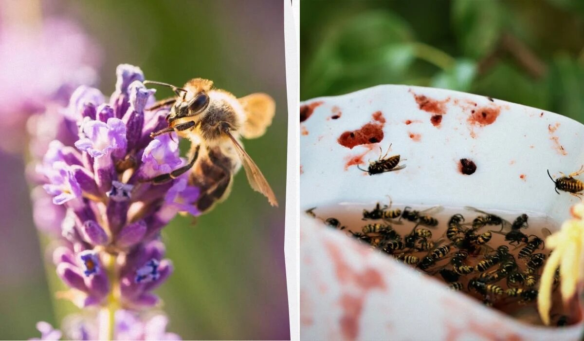 В саду можно создать приманки на основе сладких жидкостей. Достаточно взять пластиковую бутылку, разрезать её пополам и вставить верхнюю часть в нижнюю, создав ловушку. Наполните её сладким раствором из воды, сахара или меда, и добавьте немного алкоголя. Осы с удовольствием залезут в такую ловушку и утонут.