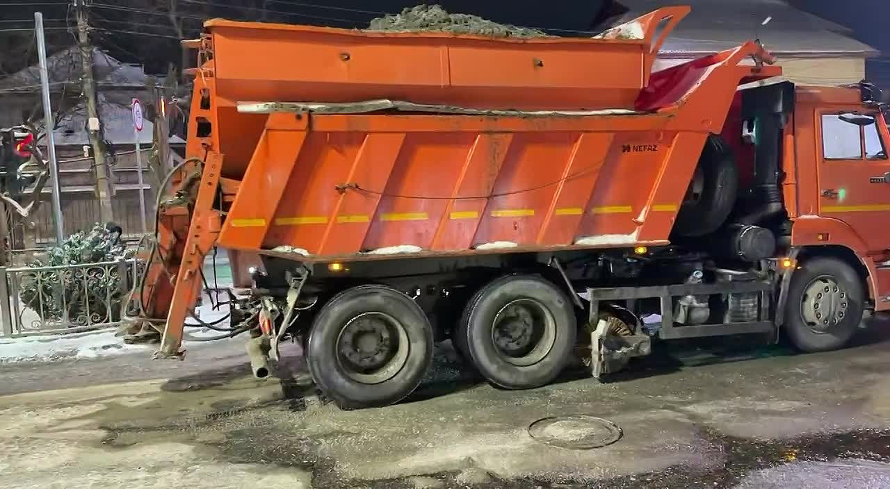 В Хасавюрте коммунальные службы продолжают подсыпку дорог песчано-соляной смесью, в том числе и в ночное время