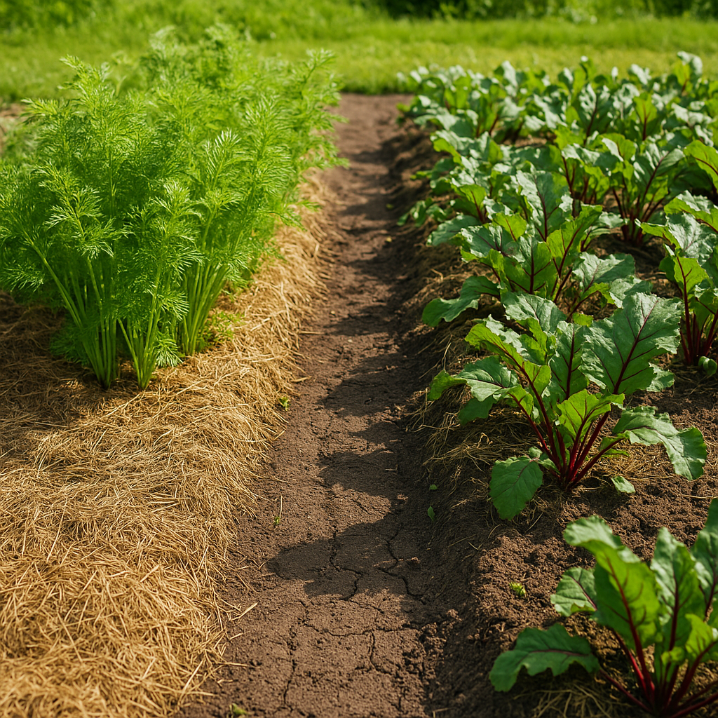 - Мульчируйте почву травой, сеном или соломой для удержания влаги.