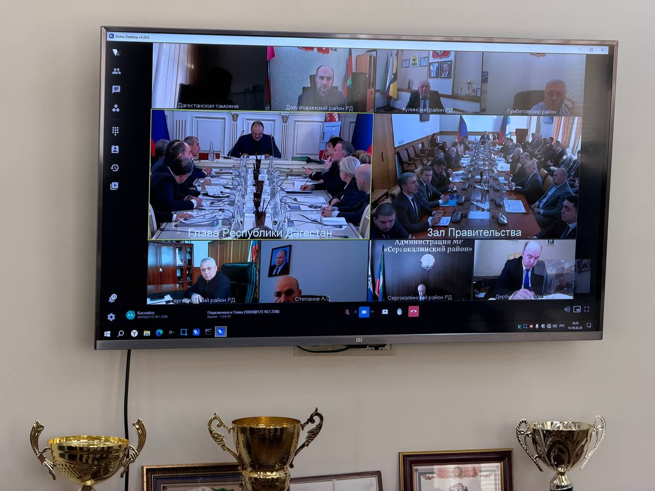 К трансляции в режиме видеоконференцисвязи подключены глава города Каспийска Борис Гонцов, его заместители Руслан Учакаев и Нурудин Халилов, а также представители профильных структурных подразделений городской администрации.