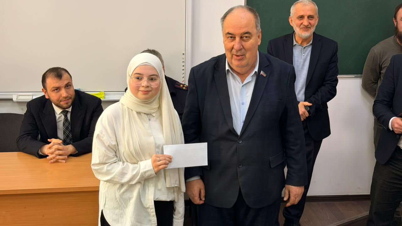 Делегация посетила Хасавюртовский педагогический колледж. Здесь Нурбаганд Нурбагандов вручил преподавателям благодарственные письма Комитета Госдумы РФ, а Руслан Ибрагимов – именные стипендии отличникам учебы и детям участников СВО.