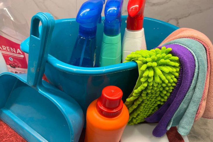 Храните уборочные принадлежности в одном месте для быстрого доступа.
