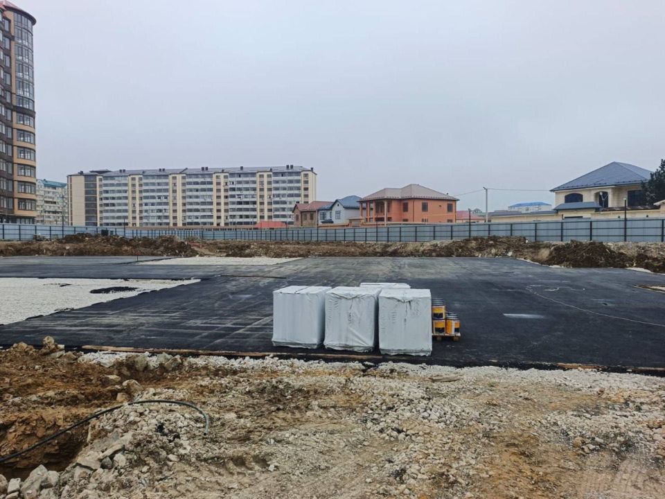 В городе Каспийске медленно, но верно продвигается строительство нового детского сада №34, рассчитанного на 240 малышей.